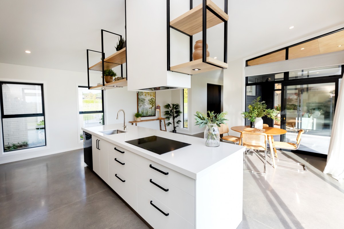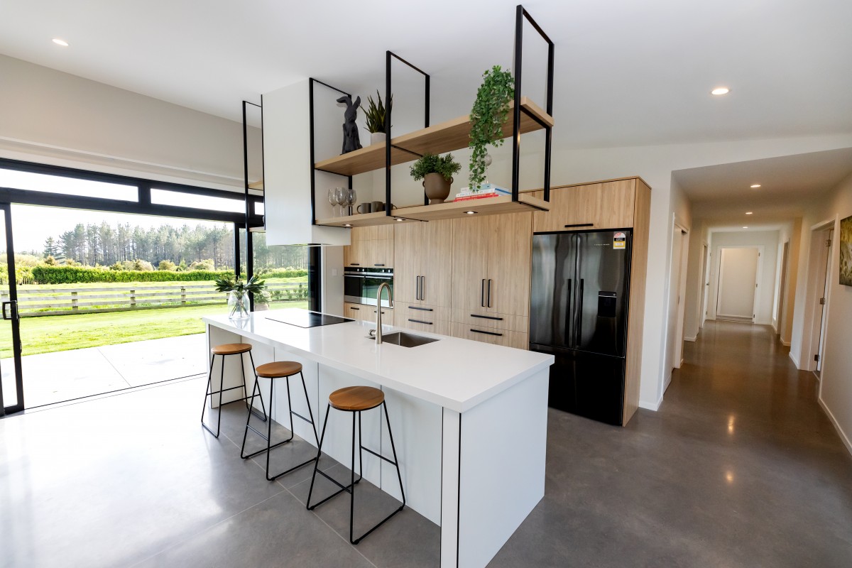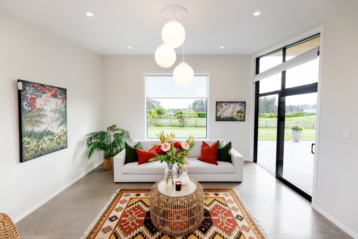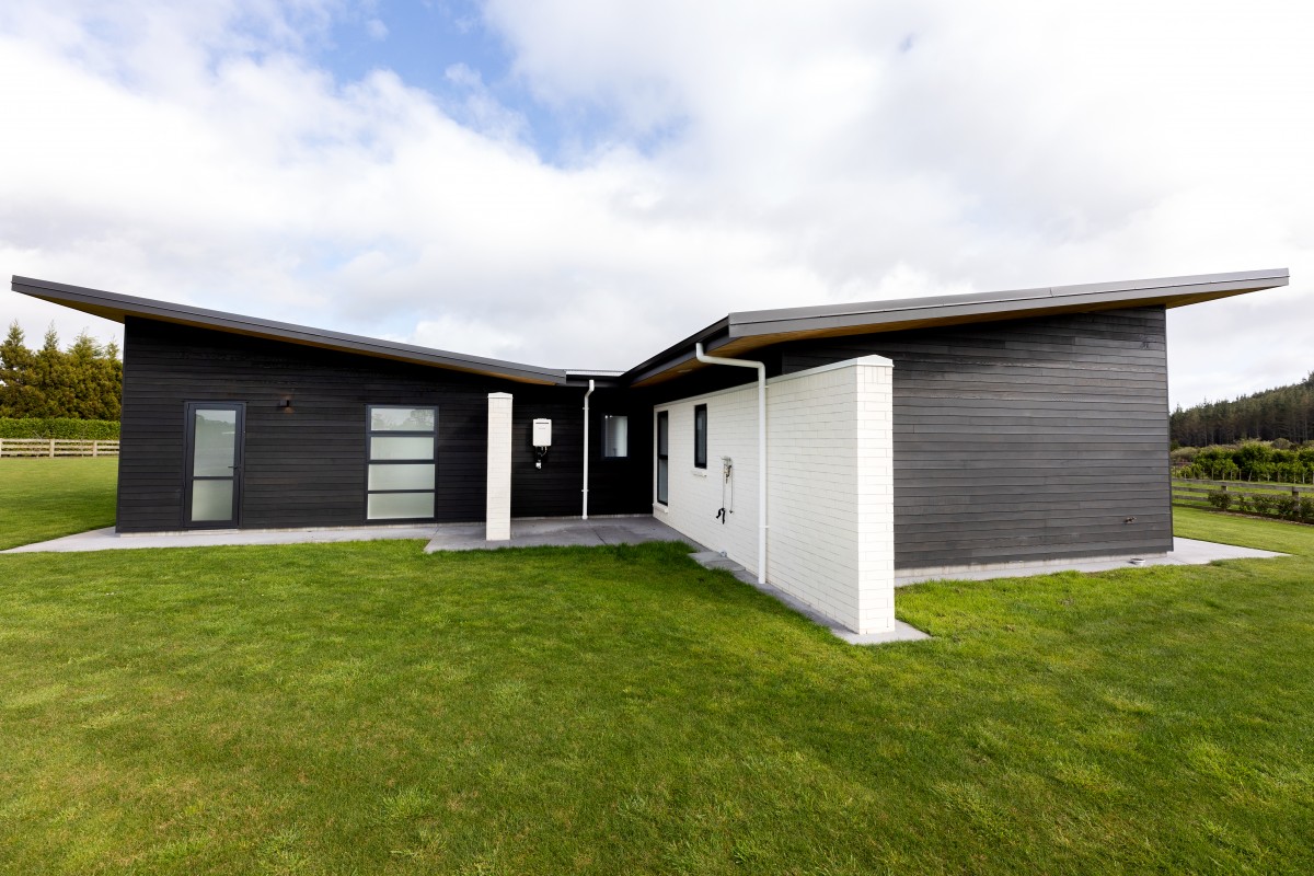 The 238.6 square metre home was designed by Imagine Architecture to grace the surrounding area in perfect unison with the sun. This required the home's front facade to extend perpendicular to north, ensuring the home would maximise the capture of the sun and day light hours. This unique positioning of the home, coupled with an extra thick wall cavity to allow for more insulation, meant that the home required no heating...a tall ask considering the home is situated in Egmont Village!